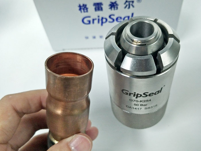 向前推動接頭插入測試管件額定位置,金屬爪牙會自動鎖緊管壁,密封圈對管件端面進行密封。